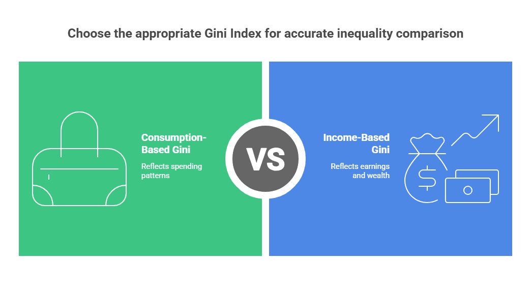 Comparing India’s consumption-based Gini to other countries’ income-based Ginis is misleading, like comparing apples to oranges. It can create a distorted picture of actual inequality levels.