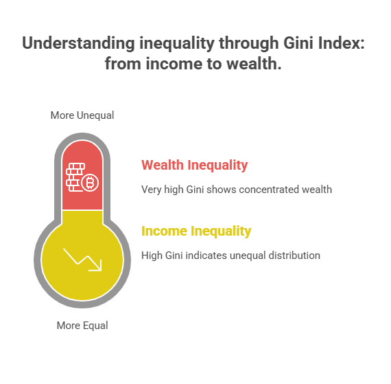 The Gini Index is a commonly used measure of inequality, ranging from 0 (perfect equality) to 100 (maximum inequality). The score of 25.5 attributed to India is based on consumption inequality how evenly people spend money—not on income or wealth inequality.