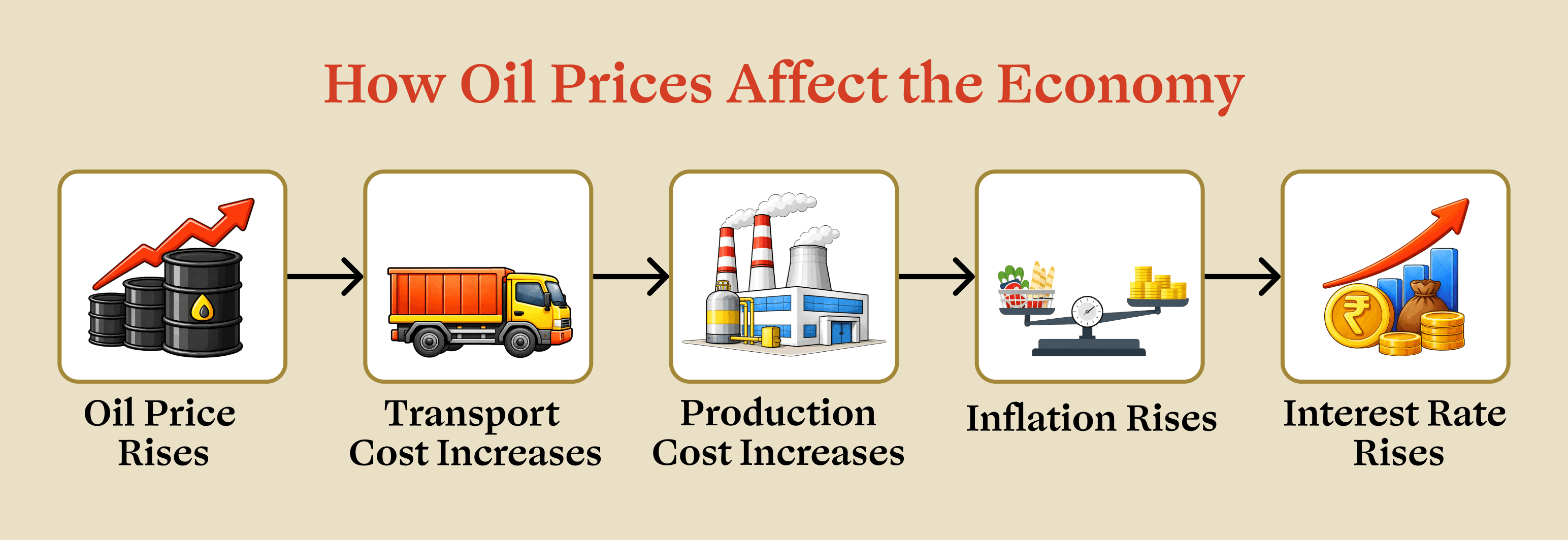 This is why economists study the relationship between oil prices and inflation so closely. When oil becomes more expensive, transportation and production costs increase across industries. Businesses eventually pass these higher costs to consumers. The result is cost-push inflation: one of the most common ways global energy shocks influence economic stability.